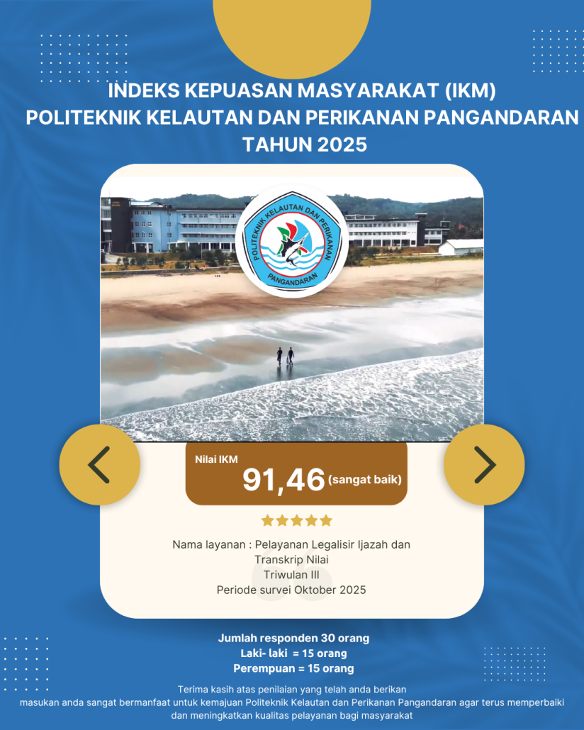 Berdasarkan hasil survei periode bulan Agustus 2025 yang telah dilaksanakan, diperoleh nilai Indeks Kepuasan Masyarakat (IKM) pada triwulan III sebesar 91,46 yang termasuk dalam kategori “Sangat Baik” untuk pelayanan legalisir ijazah dan transkip nilai.